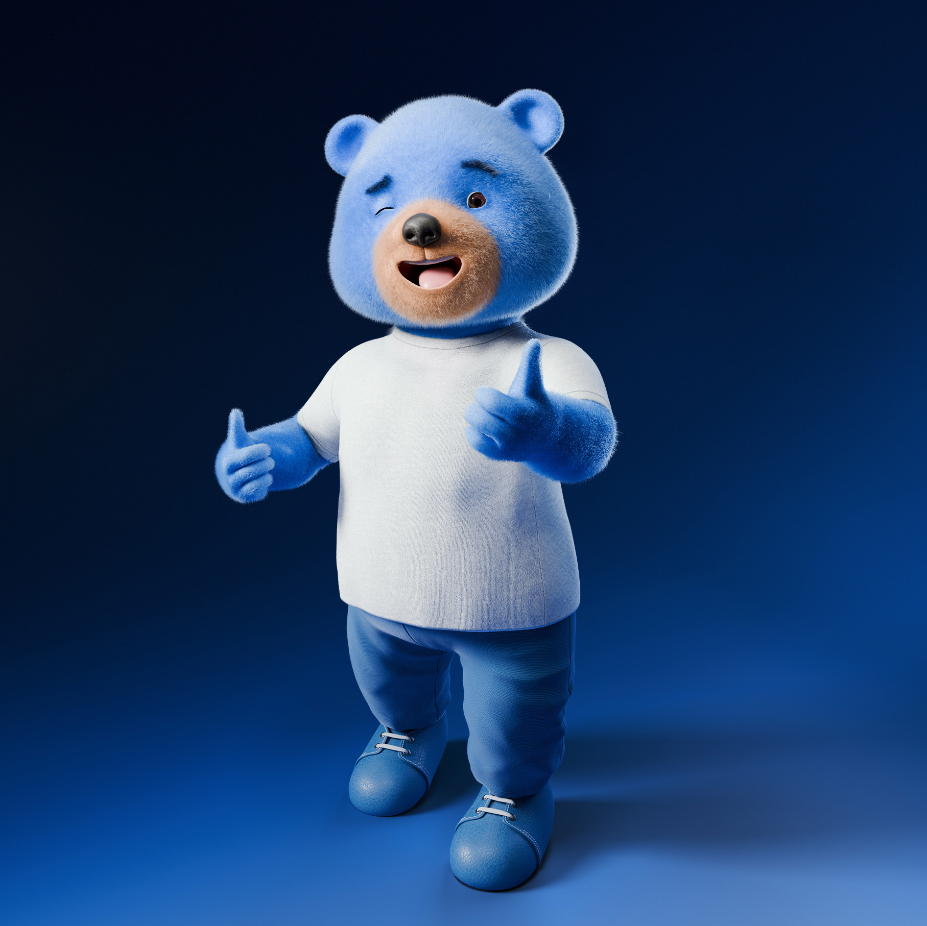 Blubear is a character designed to be the face of the Blubear brand, encapsulating its values and mission. His fluffy appearance, combined with his energetic and lovable personality, makes him a character that stands out in the crowded landscape of app promotions, ensuring that the Blubear brand remains top of mind for users.
