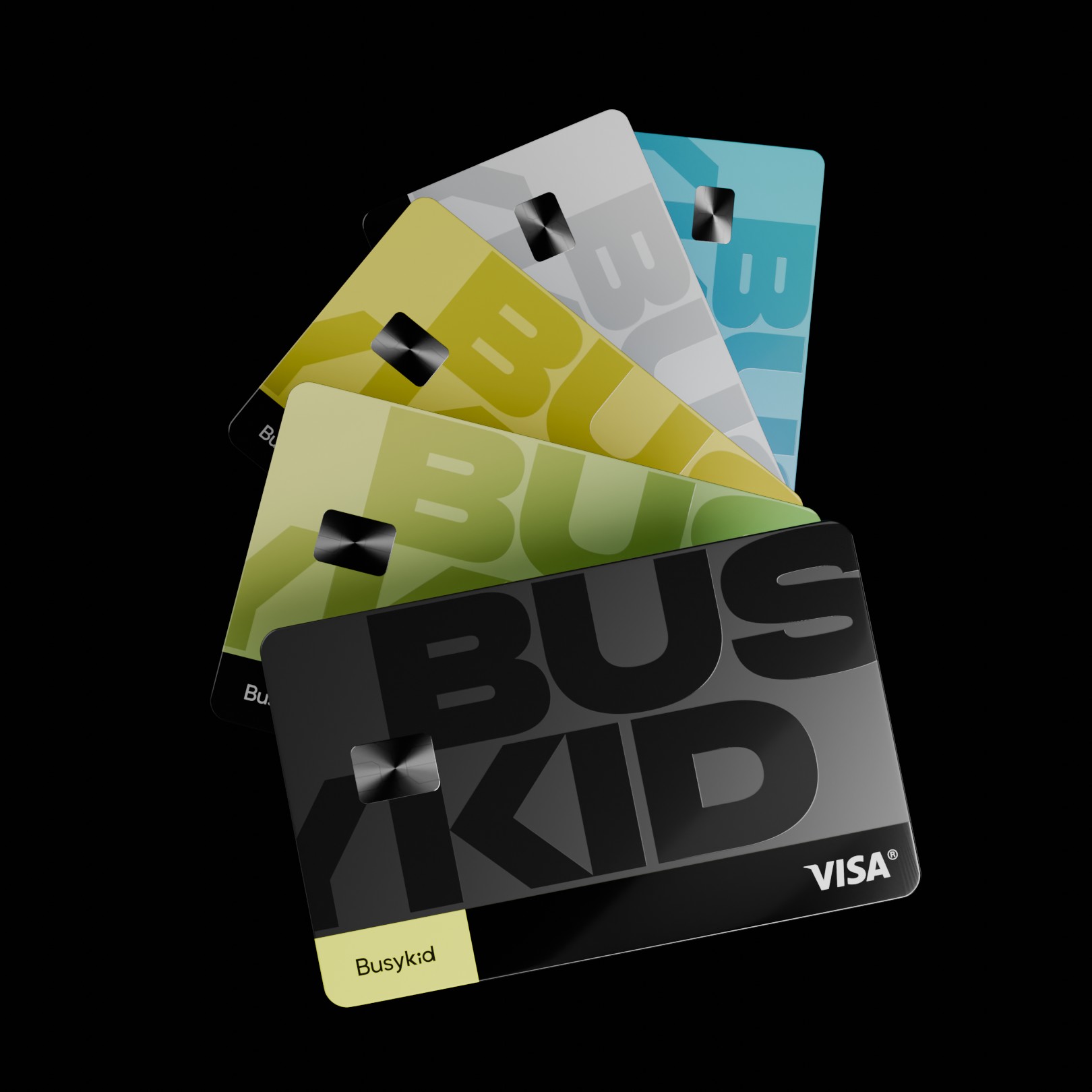 Throughout the video, we interspersed these typographic elements with detailed 3D visuals of the BusyKid bank card. The card is presented from various angles, allowing viewers to appreciate its unique design and features.